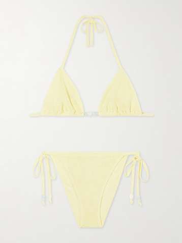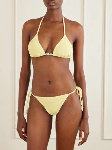 Originally established in the ‘80s, Hunza G became famous for a cutout mini dress Julia Roberts wore in Pretty Woman. Relaunched 30 years later under Creative Director Georgiana Huddart, this London-based brand makes swimsuits and bikinis from a sculpting seersucker fabric that’s a collection signature.