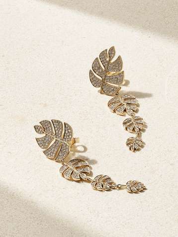 Elongated Teardrop 18K 黄金钻石迷你耳环