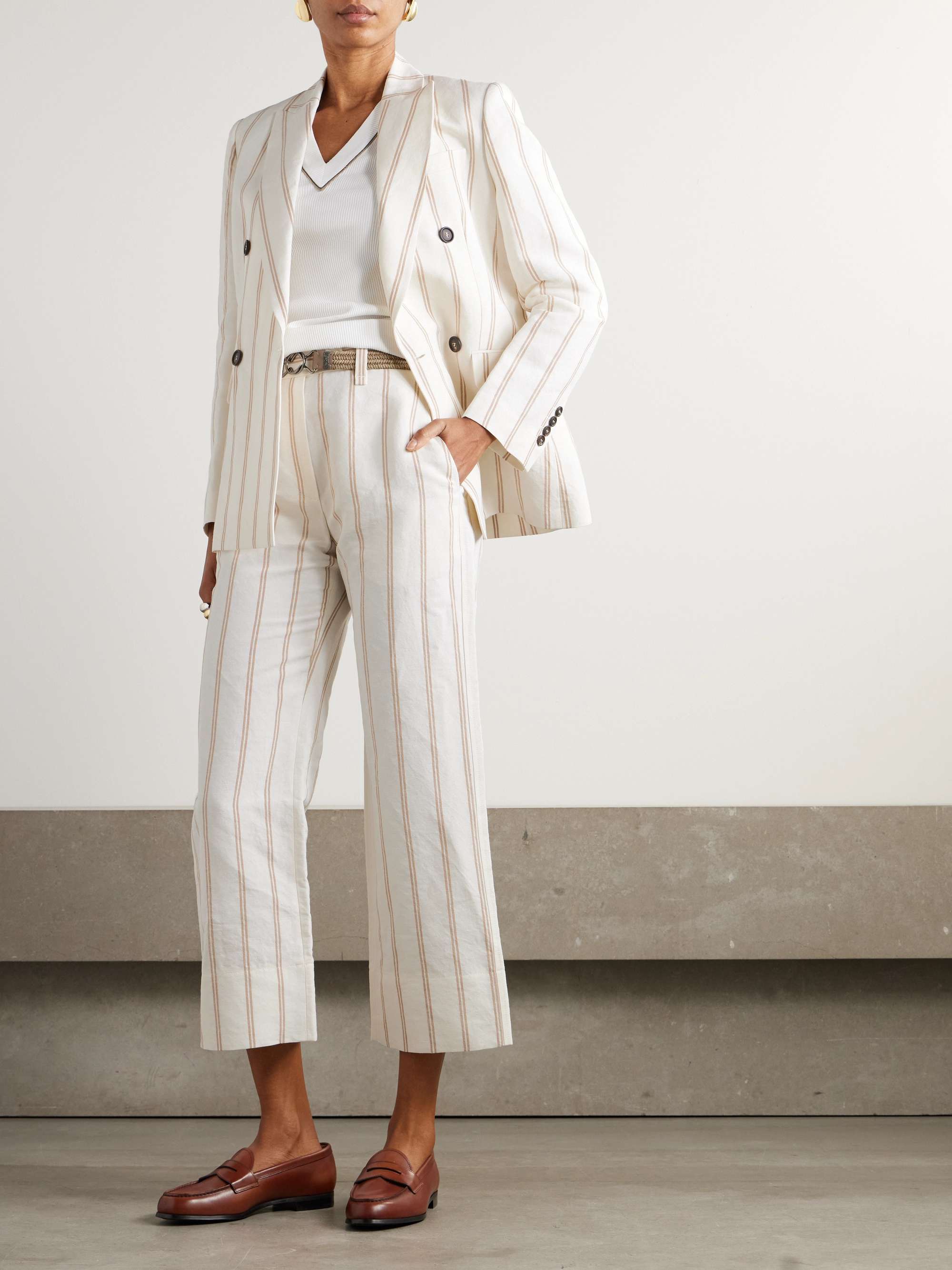 BRUNELLO CUCINELLI Cropped striped linen and cotton-blend wide-leg pants